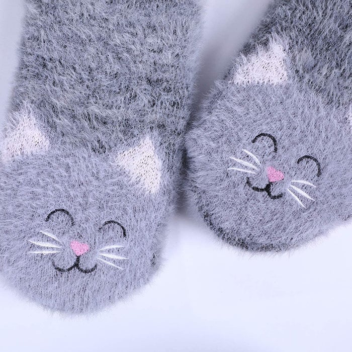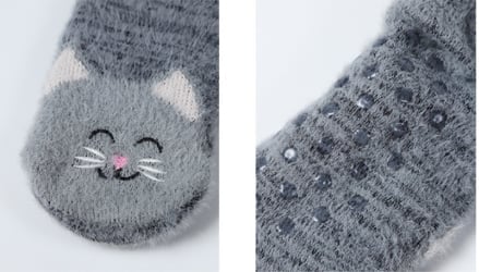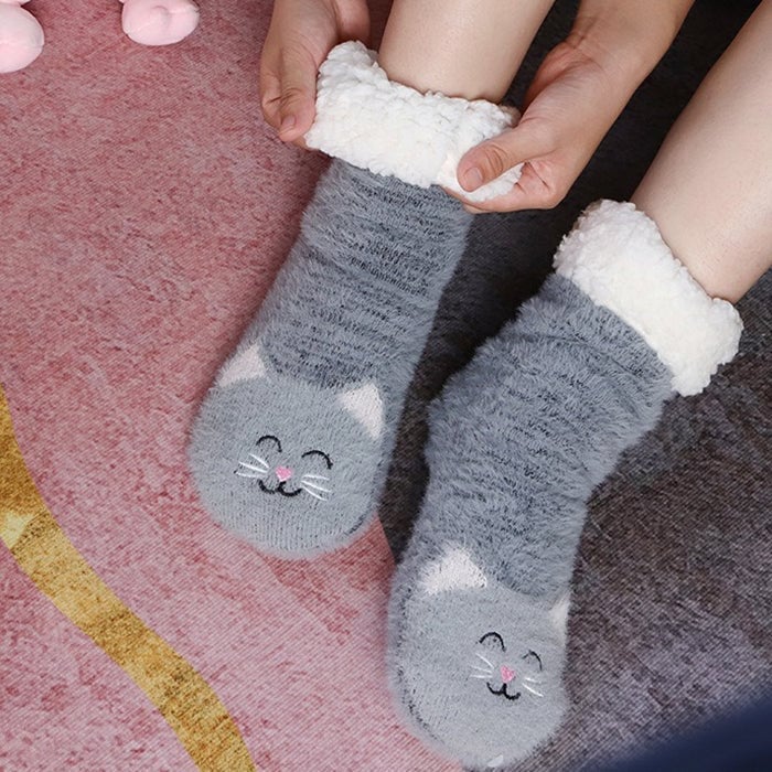 These fuzzy cat slipper socks are made of imitation sable hair, silicone rubber grips on soles of socks prevent slips and falls on smooth floors. Great socks for the elderly to prevent falls.